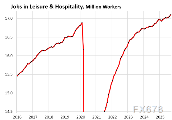 各行业就业分化明显:医疗保健和社会救助、休闲和酒店业等行业持续新增就业且部分创历史新高;专业和商业服务、制造业、信息业等则出现就业下滑;零售业、建筑业等呈现温和增长或小幅波动,不同行业受自动化、电子商务、市场需求等因素影响呈现差异化走势。
