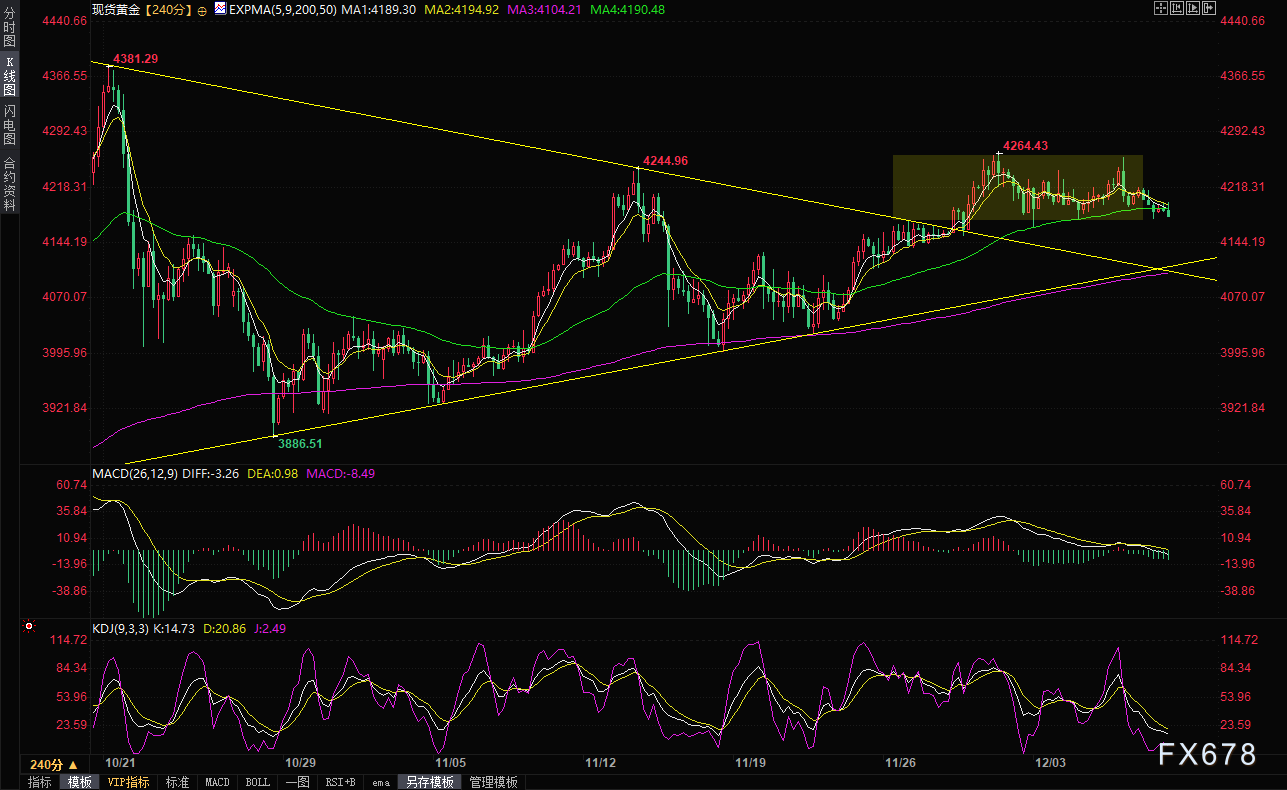 (现货黄金4小时图)