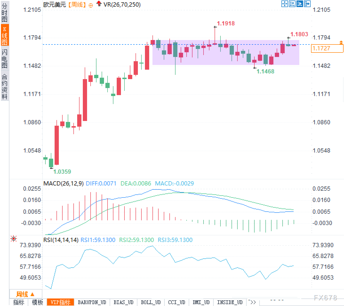 欧元兑美元在上周的连续下跌后,近期技术面呈现出买方兴趣不足的特征。观察周线图可以发现,汇价自今年年初从1.0359附近的低点强势反弹以来,已累积了相当可观的涨幅。价格在触及1.1918高点后出现回调,随后进入了一个相对宽幅的震荡区间,大致位于1.1468至1.1803之间。当前价格处于该区间的中上部位置,距离区间上沿约有76个点的空间,而距离区间下沿则有约259个点的距离。